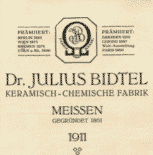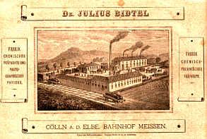 Dr. Julius Bidtel, damaliger Besitzer der Meißner Marktapotheke, gründet die Firma "Dr. Julius Bidtel", die sich mit der Herstellung pharmazeutischer Chemikalien befasst. |